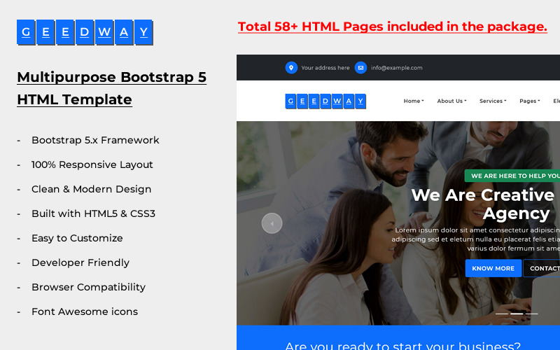 Geedway — это многоцелевой шаблон HTML5, созданный с помощью платформы Bootstrap 5. В этот шаблон включены 3 домашних страницы. Он поставляется с хорошо организованным и прокомментированным кодом и множеством опций, что делает его легко настраиваемым. Он создан с использованием новейших веб-технологий и стандартов. Он отлично смотрится со всеми типами устройств.