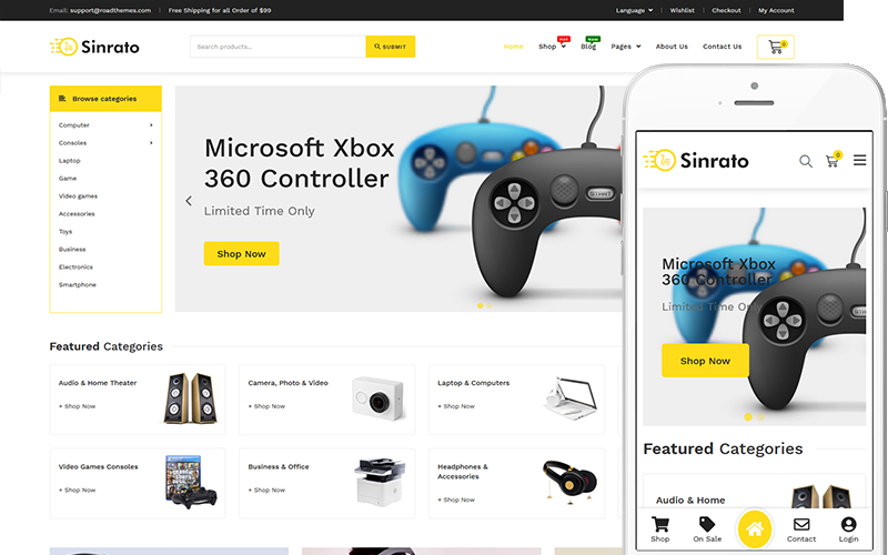 В целом, Sinrato — это многофункциональный и визуально привлекательный шаблон веб-сайта, созданный специально для магазинов цифровой техники и электроники. Его современный дизайн, адаптивный макет и бесшовная интеграция с электронной коммерцией делают его отличным выбором для компаний, стремящихся обеспечить сильное присутствие в Интернете и предоставить своим клиентам исключительные впечатления от покупок.